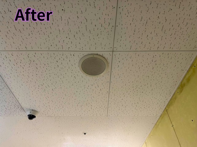 清掃後は、天井本来の色が戻り、明るく衛生的な空間となりました。