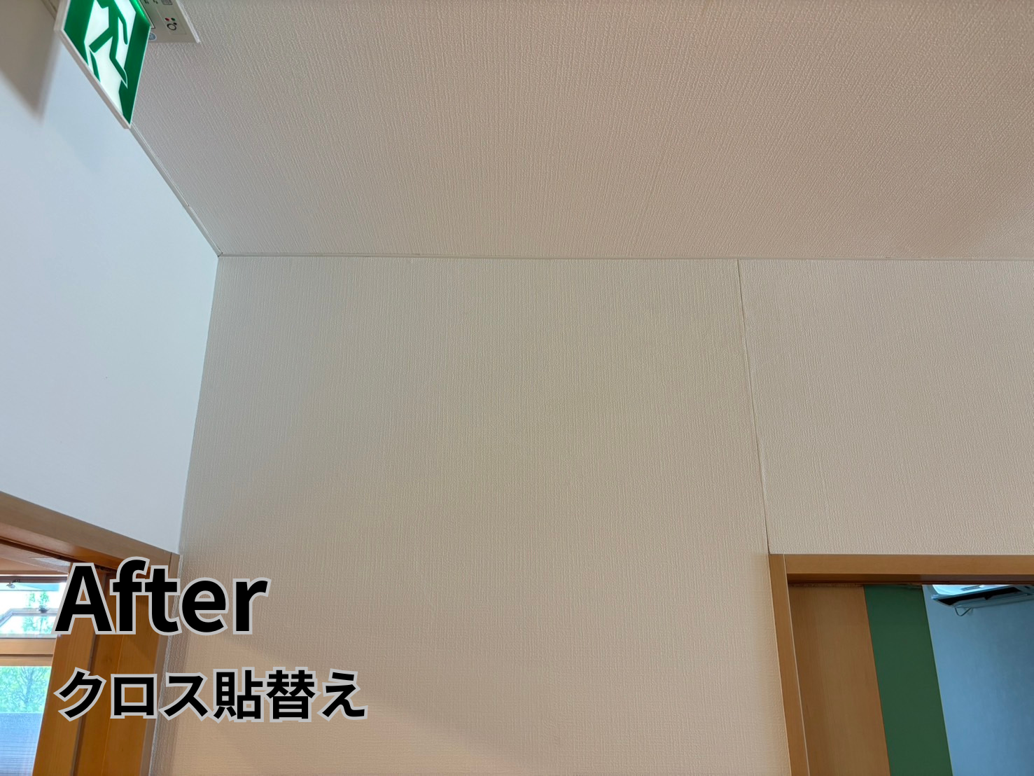 その後、新しいクロスへ貼り替えることで、室内は明るく清潔感のある空間に生まれ変わりました。