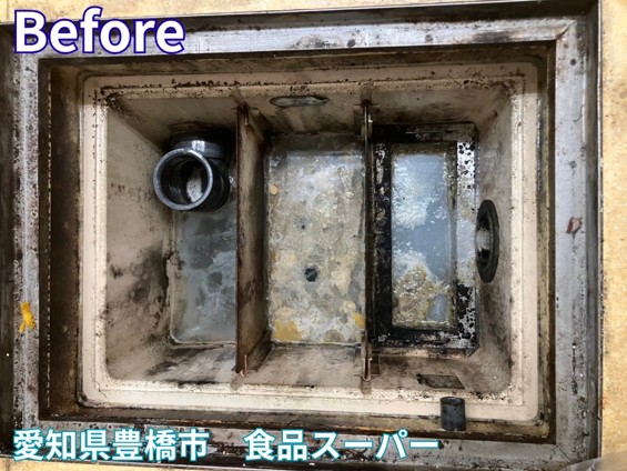 今回は、愛知県豊橋市の食品スーパー様にてグリストラップ清掃を行いました。