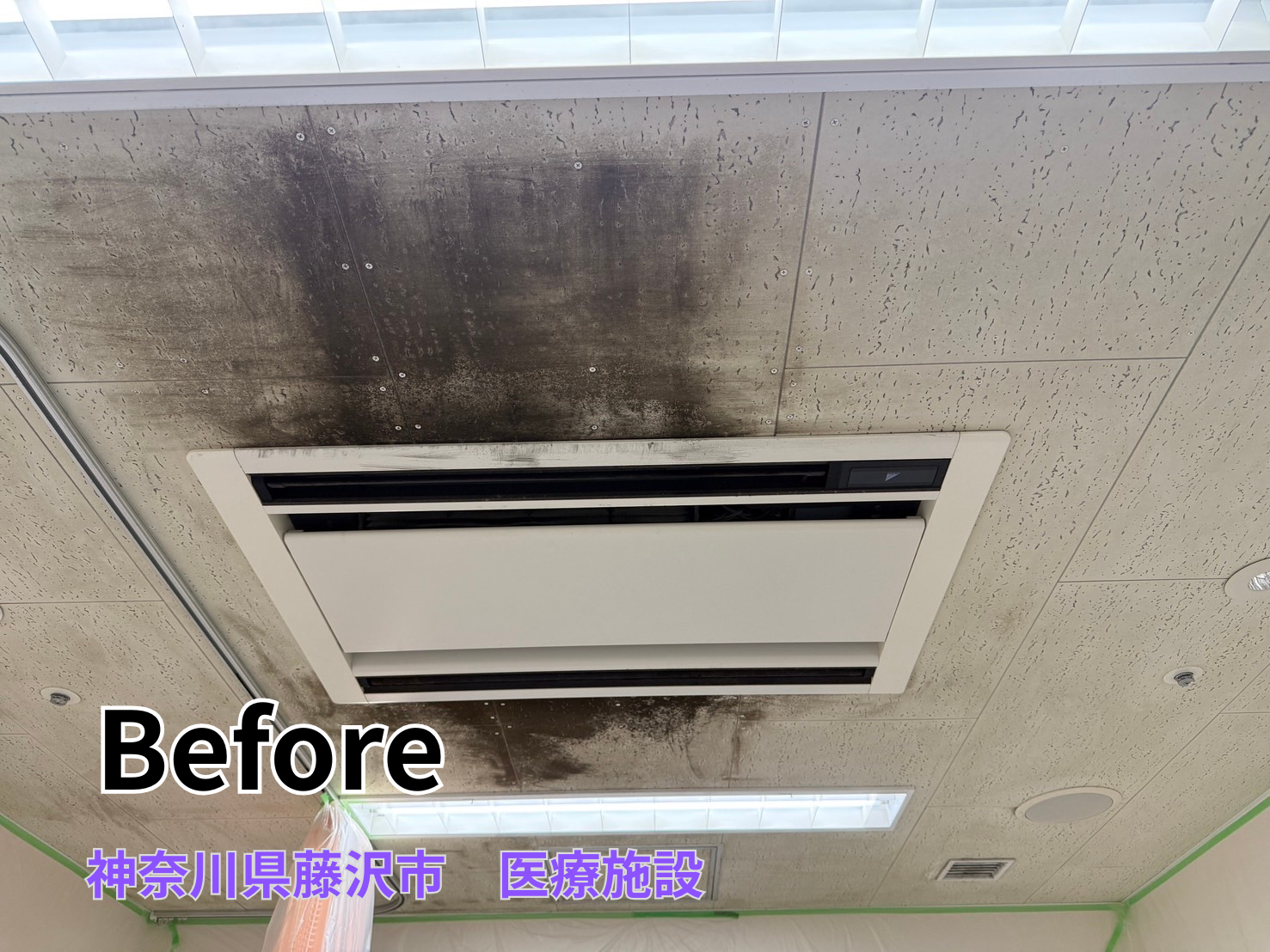 神奈川県の病院にて、天井に発生したカビの除去・防カビ施工を行いました。