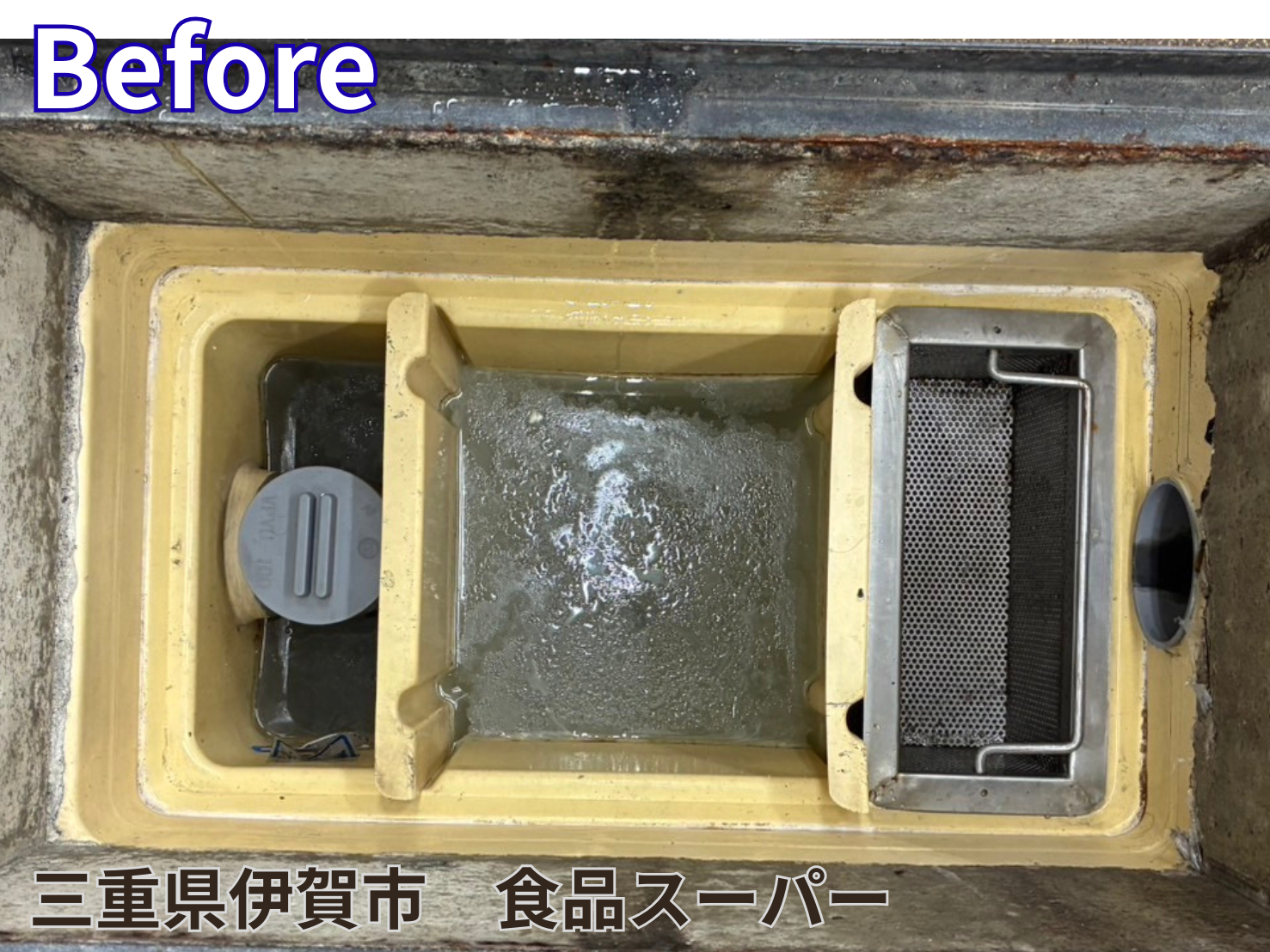 今回は、三重県伊賀市の食品スーパー様にてグリストラップ清掃およびマス清掃を行いました。