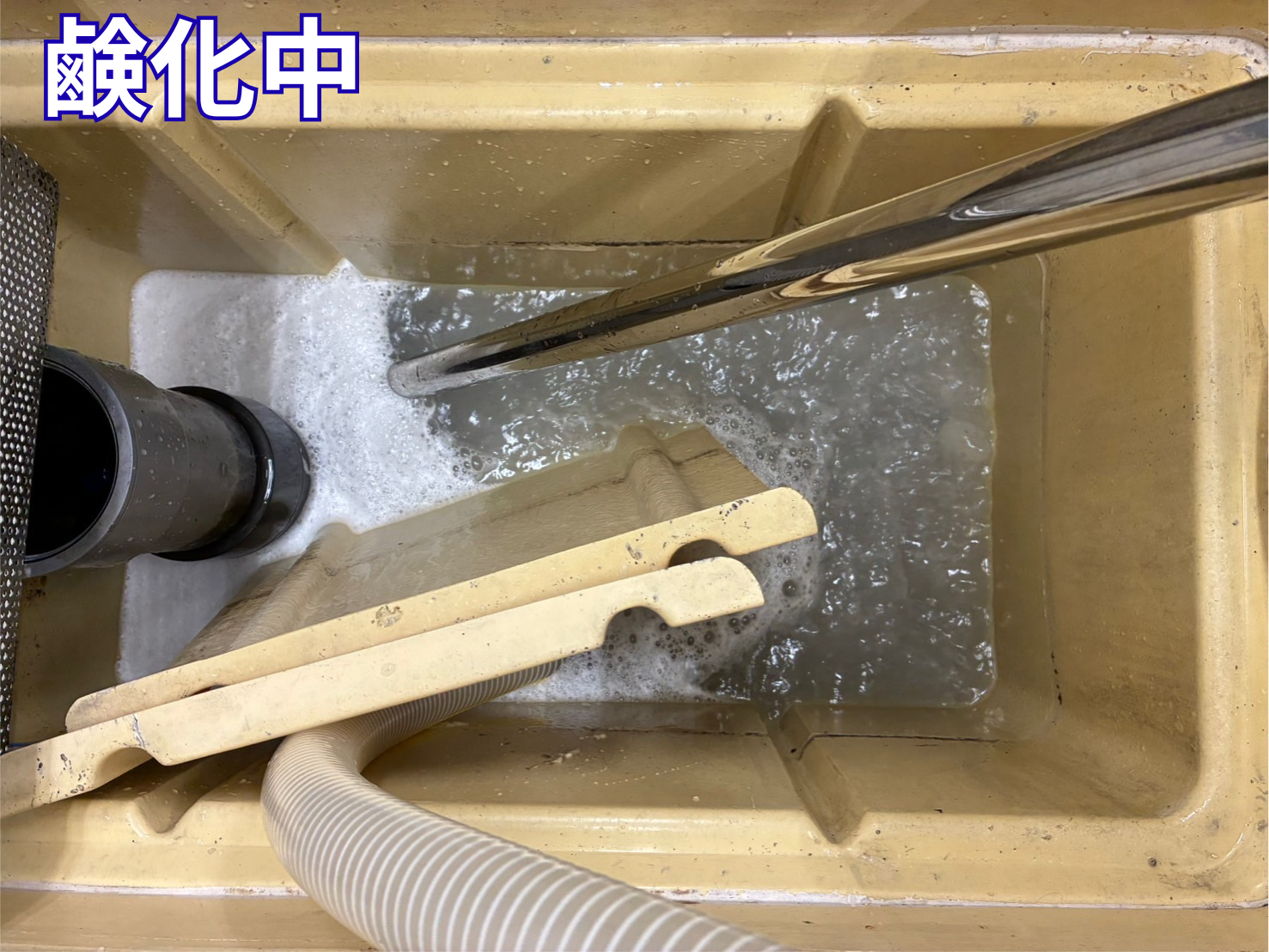 そこで、専用薬剤による「鹸化(けんか)作業」で油脂を分解し、効率的に汚れを除去しました。