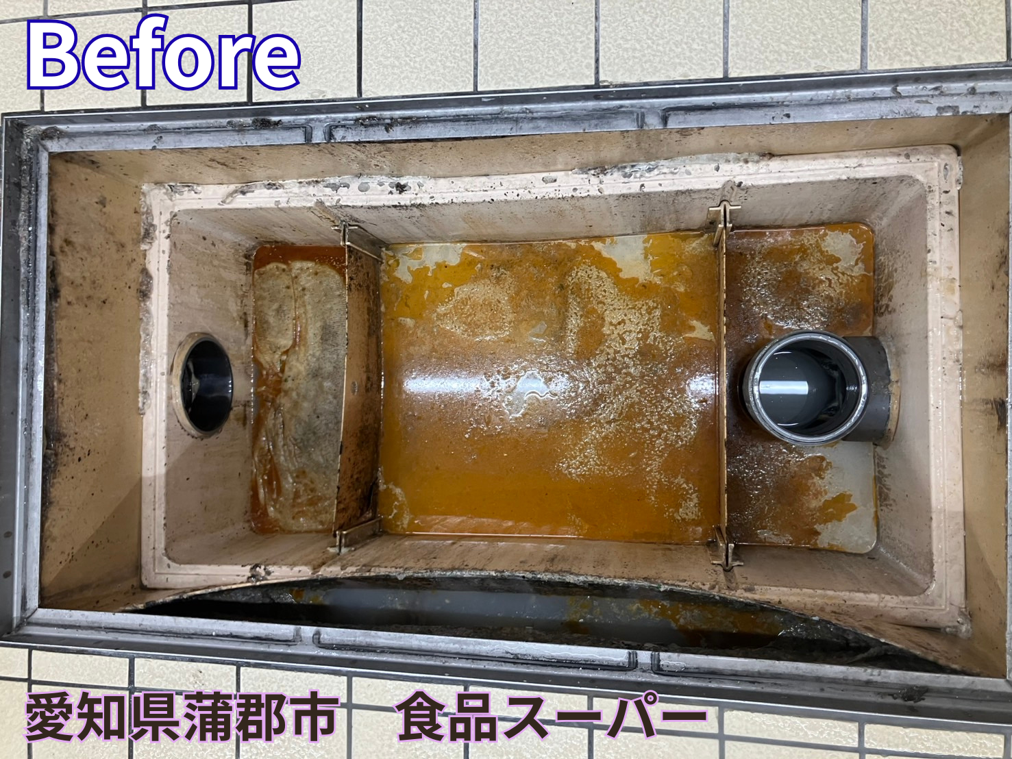 今回は、愛知県蒲郡市の食品スーパー様にてグリストラップ清掃を行いました。