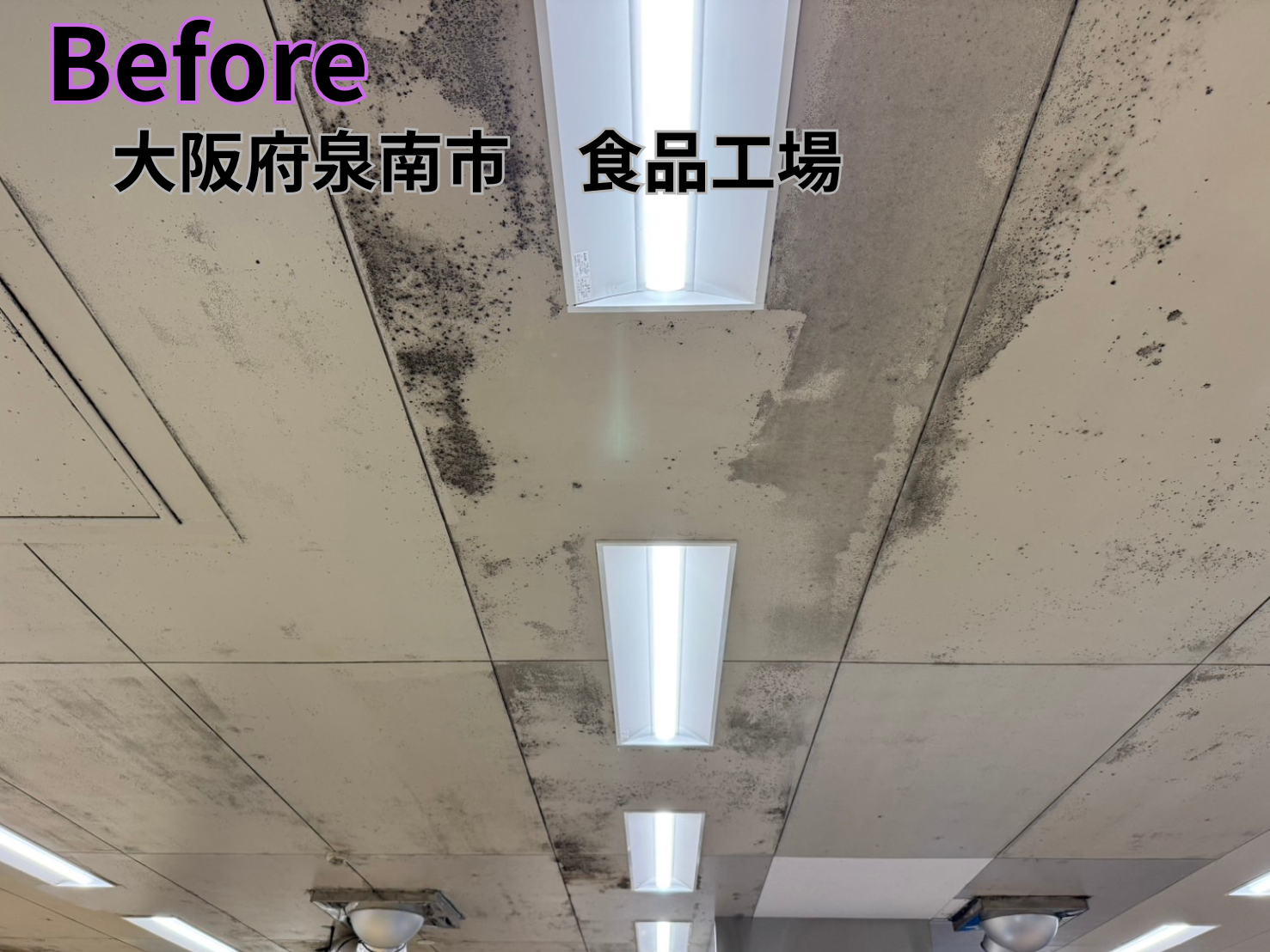 大阪府泉南市にある食品工場様にて、天井に発生したカビの清掃を行いました。